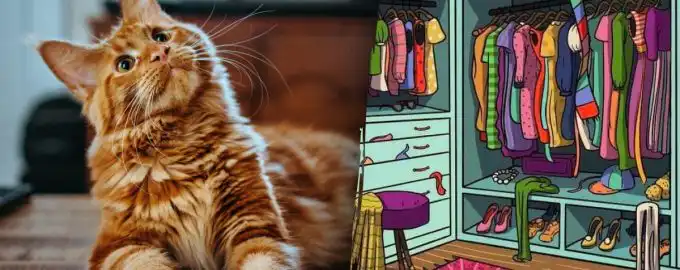 Kissa piiloutui vaatekaappiin niin taitavasti, että vain harvat olisivat voineet huomata hänet. Linkki kopioitu Sinun täytyy löytää kissa 7 sekunnissa