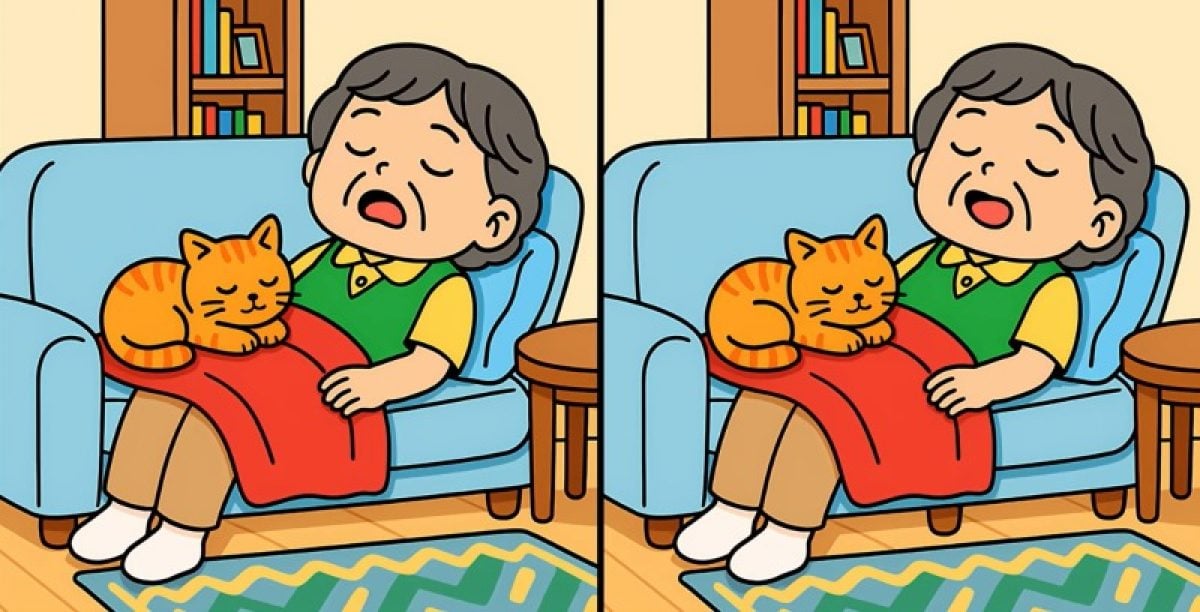 Oletko valmis testaamaan itsesi? Tässä on kaksi kuvaa: ne kuvaavat naista ja kissaa nukkumassa sohvalla. Ensi silmäyksellä kohtaukset näyttävät täsmälleen samalta, mutta niiden välillä on piilotettu kolme pientä eroa.