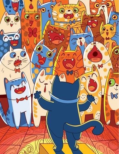 Palapelikuvassa näet ryhmän kissoja laulamassa kuorossa. Etalla oleva harmaa kissa on kuoron johtaja, ja muut kissat seuraavat häntä. Kissat valmistautuvat kuorokilpailuun ja tarvitsevat kaiken energiansa. Kuoronjohtajakissa osti ryhmälleen kalaa. Valitettavasti yksi ahneista kissoista söi kaikki kalat, ja vain yksi oli jäljellä. Löydätkö kuorosta piilotetun kalan 12 sekunnissa?