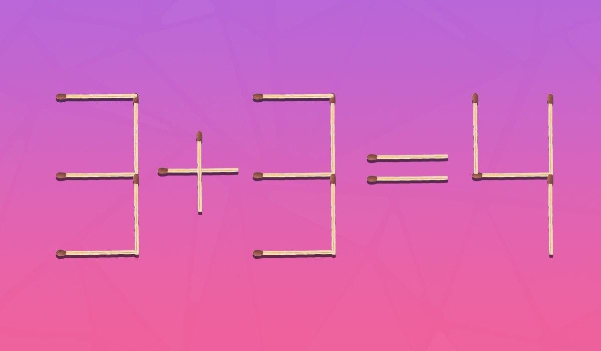 Joten alla näet kuvan, johon yhtälö 3+3=4 on asetettu tulitikuilla. Matemaattiselta kannalta se on väärin, koska vastauksen on oltava kuusi.