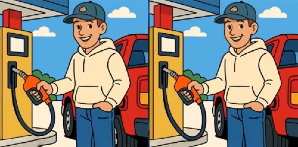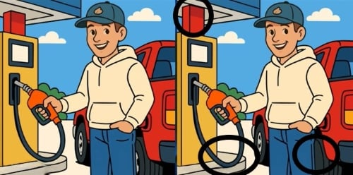 Katso tarkasti kahta kuvaa miehestä, joka täyttää autoa kaasulla. Aluksi saattaa vaikuttaa siltä, että kuvat ovat täysin samoja, mutta itse asiassa niiden välillä on piilotettu kolme pientä eroa.