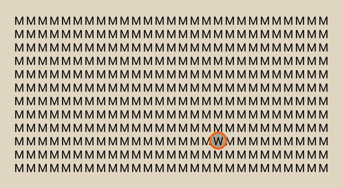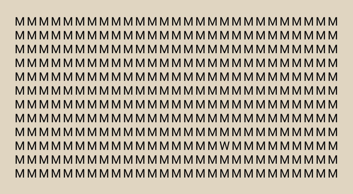 Seuraavassa arvoituksessa sinun on löydettävä kirjain W lukuisten M-kirjainten joukosta. Löytääksesi tämän kirjaimen sinun on kerättävä tarkkaavaisuutesi, koska vastaus on hyvin piilotettu.