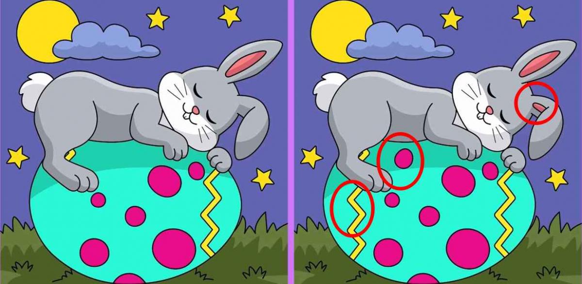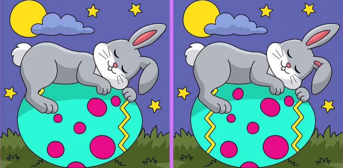 Oletko valmis testaamaan itsesi? Tässä on kaksi kuvaa: niissä näkyy pupu nukkumassa pääsiäismunan päällä. Aluksi saattaa tunt että ne ovat täysin identtisiä, mutta näin ei ole – niiden välillä on piilotettu kolme eroa.