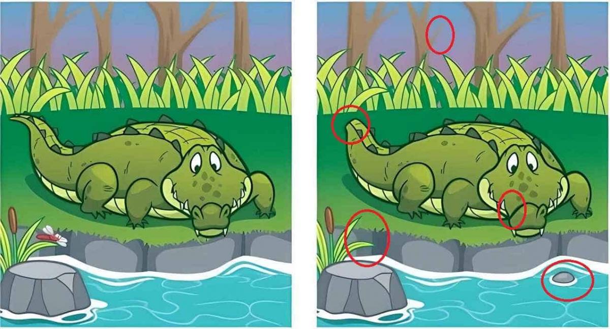 Oletko valmis testaamaan itsesi? Katso huolellisesti kuvia krokotiilin kanssa. Ensi silmäyksellä ne ovat täysin identtisiä, mutta tämä on vain illuusio – niiden välillä on 5 eroa. Löydätkö ne kaikki 13 sekunnissa?