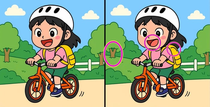 Oletko valmis testaamaan itsesi? Katso tarkasti kuvia tytöstä pyörällä. Niissä on kolme eroa piilossa, ja sinun tehtäväsi on havaita ne mahdollisimman nopeasti.