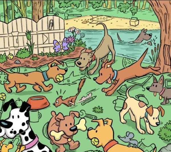 Yritä ratkaista hauska pulma – aukiolla leikkivien koirien joukossa on kadonnut magneetti, joka meidän on löydettävä nopeasti.