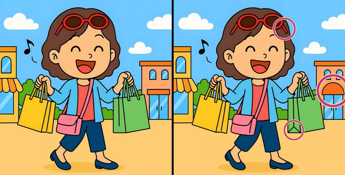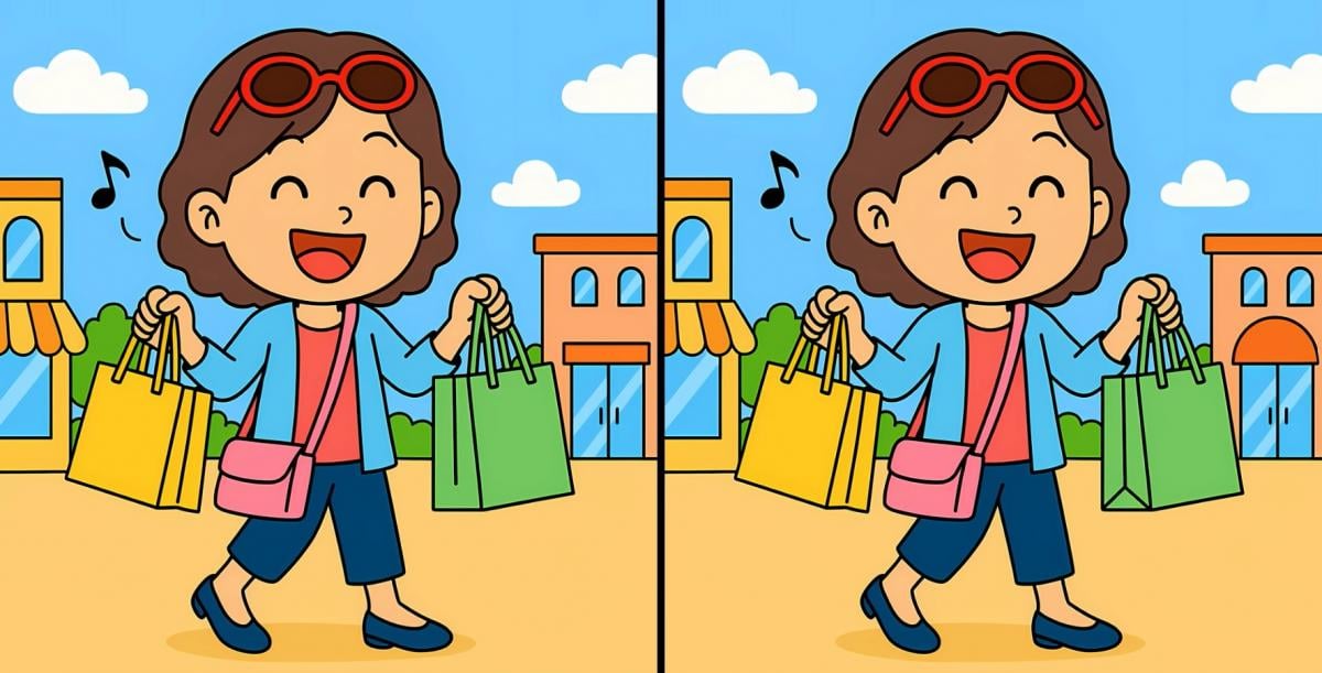 Oletko valmis testaamaan tarkkaavaisuuttasi? Tässä on kaksi kuvaa tytöstä ostoksilla. Ne näyttävät identtisiltä, mutta tämä on vain optinen harha – niiden välillä on piilotettu kolme eroa.