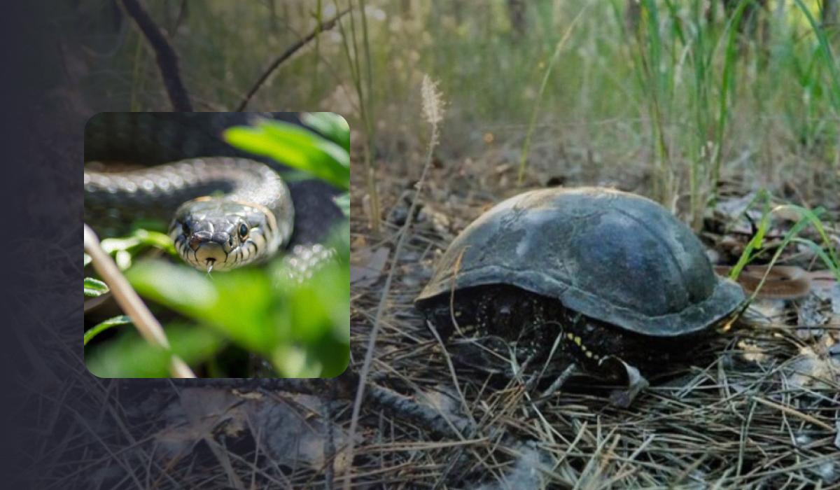 Tänään Moje kutsuu sinut testaamaan tarkkaavaisuuttasi kauniin valokuvan avulla. Kuvassa näet suuren kilpikonnan piilossa sen kuoreen. Hänen ympärillään on kuivaa ja vihreää ruohoa, oksia ja puita.