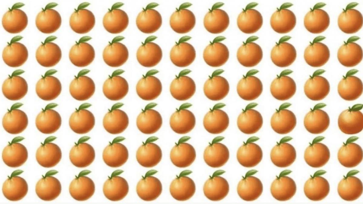 Ratkaise viihdyttävä, mutta ei helpoin pulma – sinun on yritettävä nopeasti löytää appelsiini, joka eroaa kuvan muista.