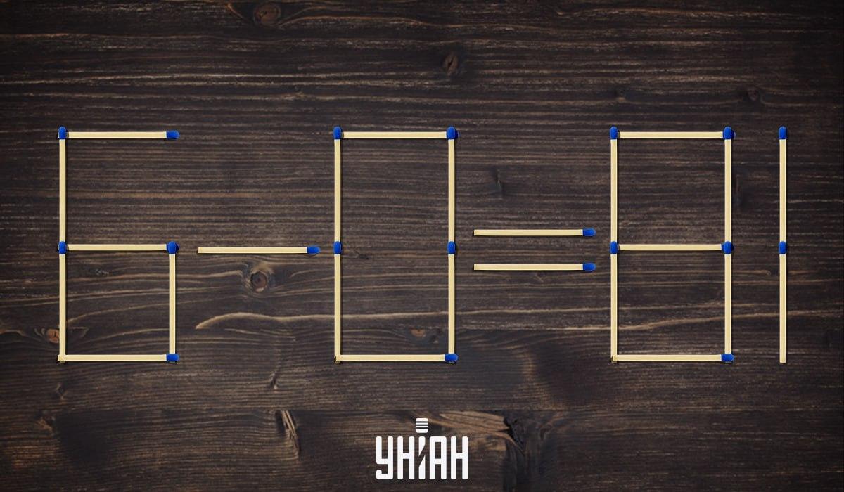 Kuvassa aritmeettinen esimerkki 6-0=81 tulitikuilla, mikä on ilmeisen väärä. Voit järjestää uudelleen vain 2 osumaa, jotta ongelma näyttää oikealta. Tätä varten sinun on ajateltava laatikon ulkopuolella ja sinulla on oltava hyvä matemaattinen intuitio.