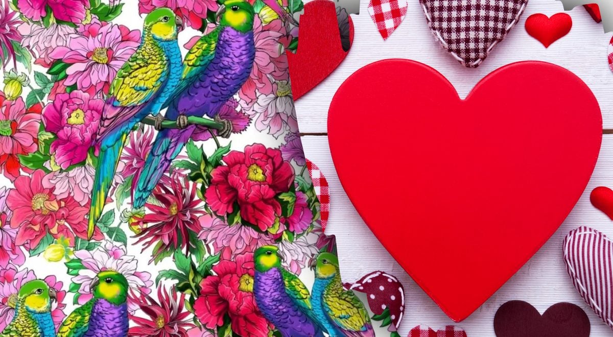 Silmiesi edessä on kirkas kuva, jossa on paljon kukkia ja papukaijoja. Linnut istuvat pareittain kukkien keskellä. Ja tässä romanttisessa ympäristössä sydän on piilossa jonnekin. Kaikki eivät näe tarkalleen missä se sijaitsee.